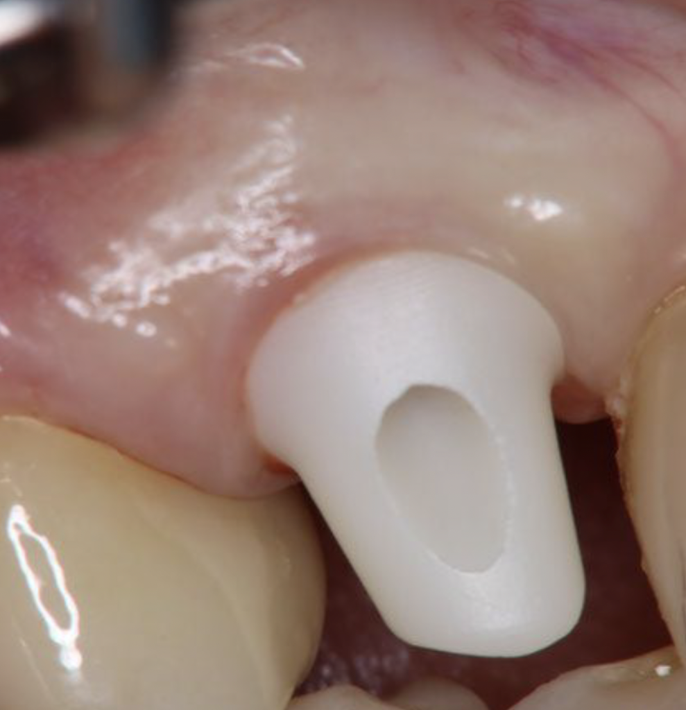 仮歯を外してインプラントの土台を入れ、これに被せもの(セラミックス)を入れて完成です。