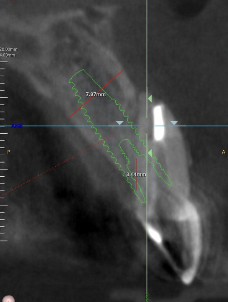 抜歯当日にインプラントを埋入し、仮歯まで行う抜歯即時インプラント治療を行いました。